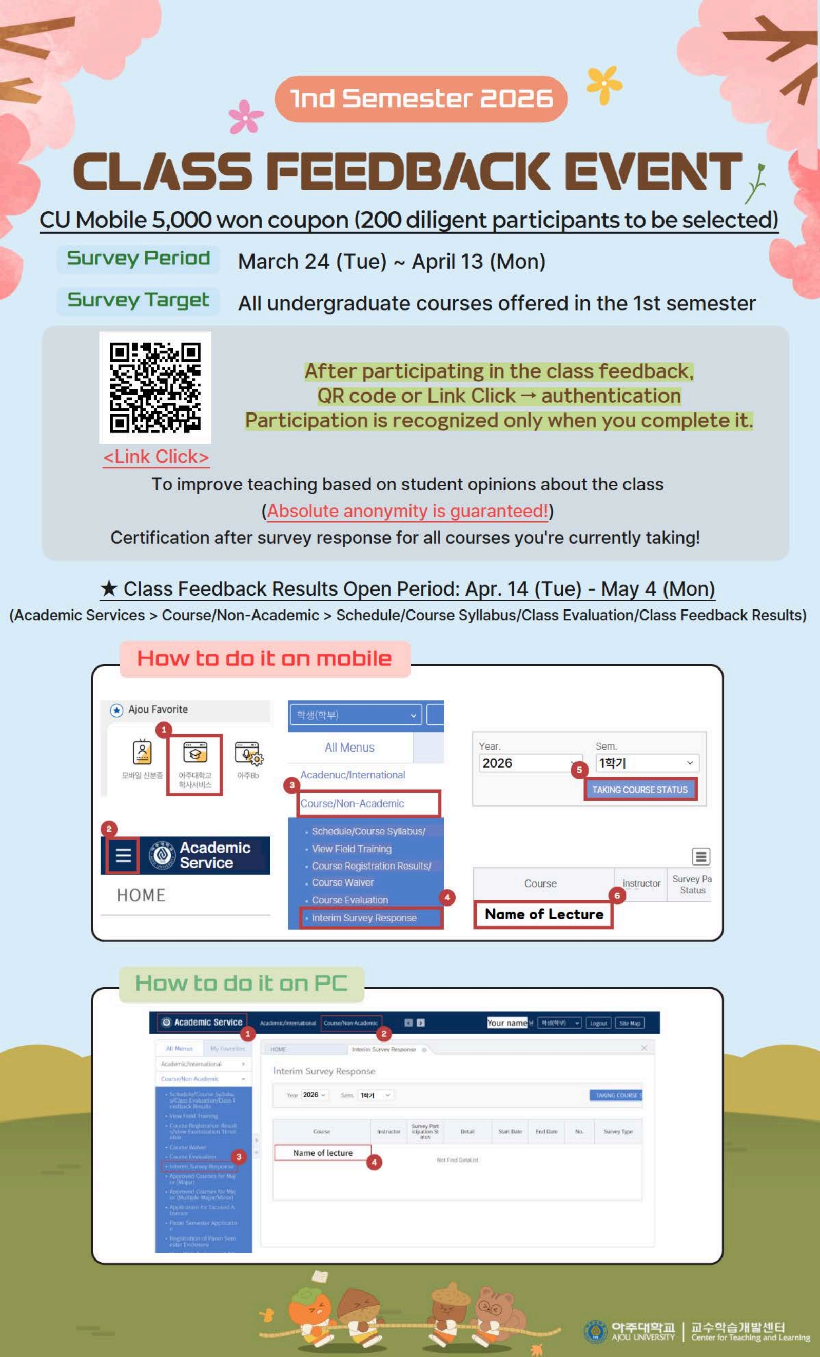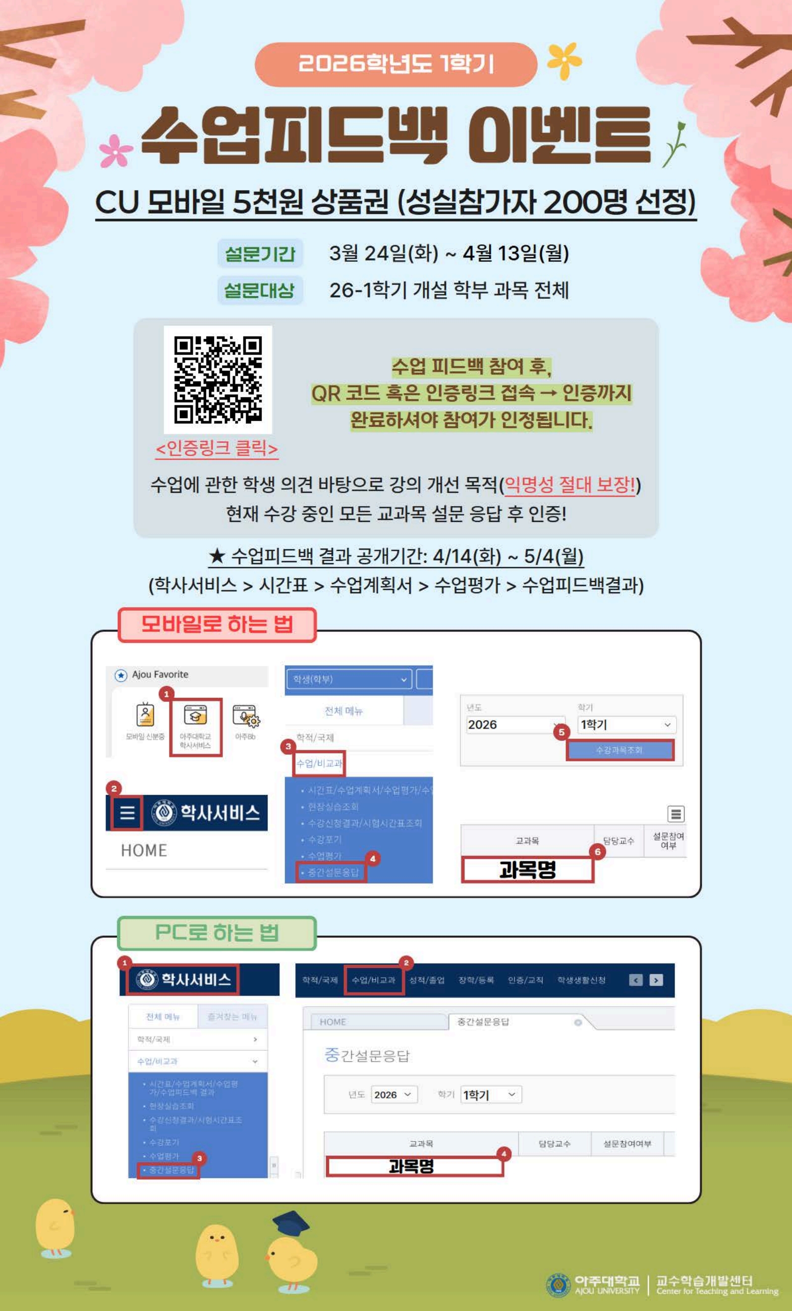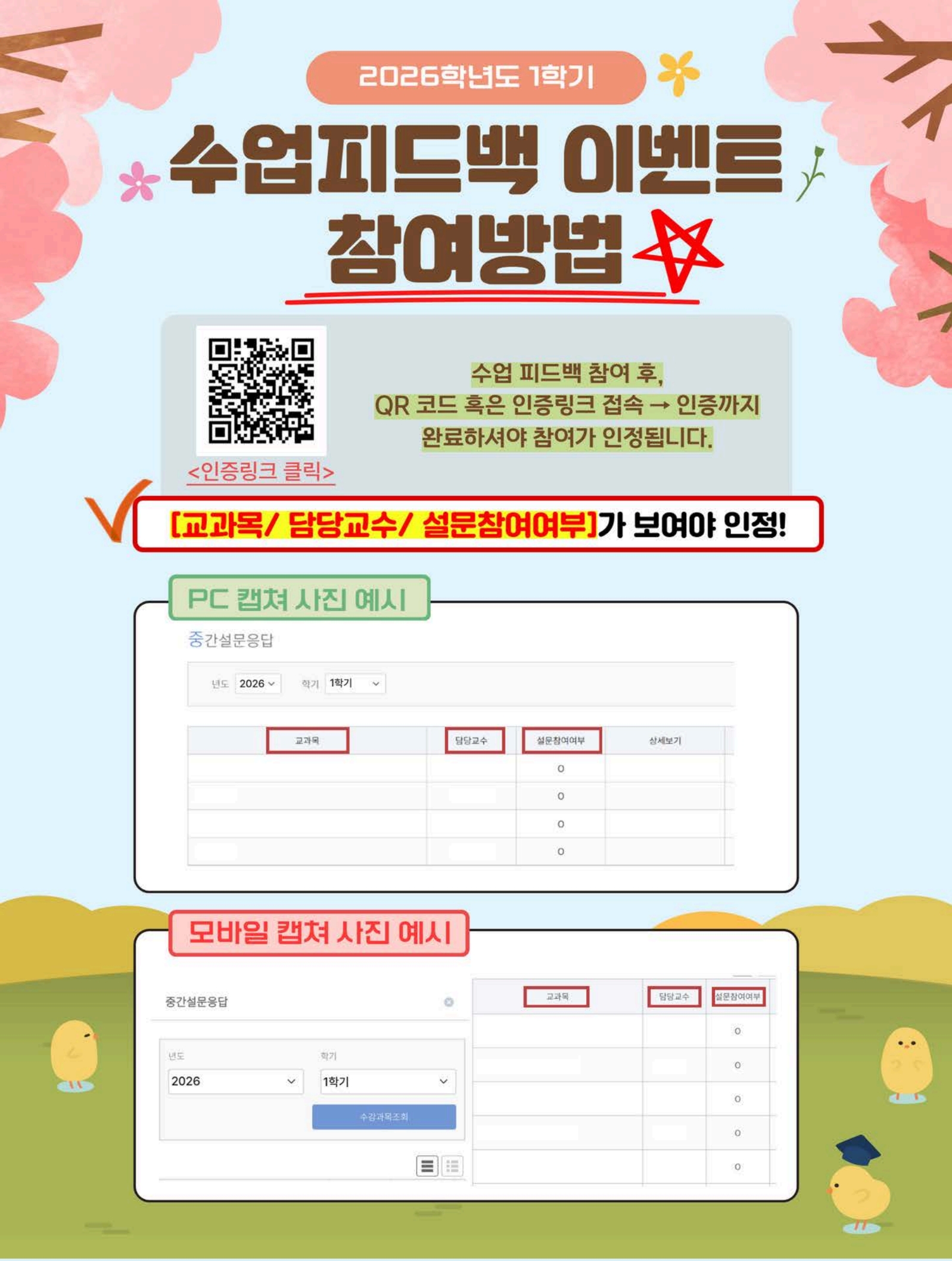 [학사] [교수학습개발센터]2026학년도 1학기 수업피드백 참여 안내(3.24.(화)~4.13.(월))